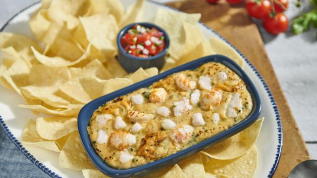 Sweet Maritime lobster meat, seafood, artichokes and spinach in a three-cheese blend. Served with tortilla chips and pico de gallo.